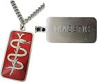 Call Us: 0121 233 7455 - Or email: sales@medicaltags.co.uk FREE UK DELIVERY ON ALL ORDERS - USUALLY WITHIN 1-2 WORKING DAYS Pre-Engraved Medical Alert Pendants This page shows our range of surgical stainless steel medical pendants, sometimes known as identification tags, medical jewellery, medical tags, medi I.D, drug allergy tags, emergency tags and lifesaving jewellery tags. The pendants listed below all come with a standard 25" closed link stainless steel chain. All are pre-engraved with a specific medical condition. Red PendantDIABETIC£14.95 Red PendantASTHMA£14.95 Red PendantPENICILLIN ALLERGY£14.95 Red PendantEPILEPSY£14.95 Red PendantON STEROIDS£14.95 Blue PendantDIABETIC£14.95 Blue PendantASTHMA£14.95 Blue PendantPENICILLIN ALLERGY£14.95 Blue PendantEPILEPSY£14.95 Blue PendantON STEROIDS£14.95 Diabetes, Asthma, Heart Condition, Epilepsy, Penicillin Allergy, On Steroids, On Warfarin.