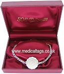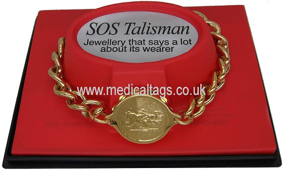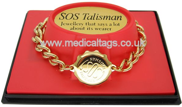 Call Us: 0121 233 7455 - Or email: sales@medicaltags.co.uk FREE UK DELIVERY ON ALL ORDERS - USUALLY WITHIN 1-2 WORKING DAYS SOS Talisman Bracelets This page shows our range of SOS Talisman Bracelets,Inside the capsule is a folded paper insert. This is where you write your own medical details or even your Organ Donor information.Theses items have no personalised engraving.How to orderTags can be ordered in three ways- by phoning 0121 233 7455. We will take your order and payment details and process them accordingly or- by clicking on the "Add" button near to the item. You will be forwarded to our shopping cart. This will show what you are about to order. To continue with the order press the Go to checkout button. You will then be asked for your address and credit card payment details. Finally you will be asked to confirm the order. You will be emailed to confirm that we have received your order.Your SOS Bracelet will arrive approximately 2 to 4 days later. If you are unsure about anything, you can email us. We will then contact you as soon as we can to discuss your requirements. or- If you wish to pay by a UK only cheque, please write or phone with all relevant information. Cheques should be made payable to "Creative Watch Company Ltd". SOS Talisman BraceletPrice £68.04 Gents Gold PlatedExpanding BraceletModel No. 237125 Click thumbnail Material...Gold Plated Stainless Steel Bracelet Circumference...Standard fitscomfortably 7 1/2 inch to 9 inch wrist. Please call for smaller or larger lengths. Capsule Dimensions...width = 22mm .........................thickness = 6.5mm Complete with Presentation Box As ShownCarriage FREE in UK! Accessories Waterproof Pen Suitable forSOS Talisman - £4.50 Additional Inserts for SOS TalismanPack of 4 - £5.50 SOS Talisman BraceletPrice £73.44 Gold Plated BraceletLadies Snake & StaffModel No. 232364 Click thumbnail Material...Gold Plated Stainless Steel Bracelet Circumference...8 inch Please call for smaller or larger lengths. Capsule Dimensions...width = 22mm ..........................thickness = 4.0mm Complete with Presentation Box As ShownCarriage FREE in UK! Accessories Waterproof Pen Suitable forSOS Talisman - £4.50 Additional Inserts for SOS TalismanPack of 4 - £5.50 SOS Talisman BraceletPrice £75.60 Gold Plated BraceletGent Snake & StaffModel No. 232363 Click thumbnail Material...Gold Plated Stainless Steel Bracelet Circumference...9 inch Please call for smaller or larger lengths. Capsule Dimensions...width = 22mm ..........................thickness = 4.0mm Complete with Presentation Box As ShownCarriage FREE in UK! Accessories Waterproof Pen Suitable forSOS Talisman - £4.50 Additional Inserts for SOS TalismanPack of 4 - £5.50 SOS Talisman BraceletPrice £73.44 Gold Plated BraceletLadies St. ChristopherModel No. 232336 Click thumbnail Material...Gold Plated Stainless Steel Bracelet Circumference...8 inch Please call for smaller or larger lengths. Capsule Dimensions...width = 22mm ..........................thickness = 4.0mm Complete with Presentation Box As ShownCarriage FREE in UK! Accessories Waterproof Pen Suitable forSOS Talisman - £4.50 Additional Inserts for SOS TalismanPack of 4 - £5.50 SOS Talisman BraceletPrice £75.60 Gold Plated BraceletGents St. ChristopherModel No. 232335 Click thumbnail Material...Gold Plated Stainless Steel Bracelet Circumference...9 inch Please call for smaller or larger lengths. Capsule Dimensions...width = 22mm ..........................thickness = 4.0mm Complete with Presentation Box As ShownCarriage FREE in UK! Accessories Waterproof Pen Suitable forSOS Talisman - £4.50 Additional Inserts for SOS TalismanPack of 4 - £5.50 SOS Talisman BraceletPrice £63.72 Ladies Stainless SteelExpanding BraceletModel No. 237501 Click thumbnail Material...Stainless Steel Bracelet Circumference...Standard fitscomfortably 7 1/2 inch to 9 inch wrist. Please call for smaller or larger lengths. Capsule Dimensions.........width = 22mm ................................thickness = 6.5mm Complete with Presentation Box As ShownCarriage FREE in UK! Accessories Waterproof Pen Suitable forSOS Talisman - £4.50 Additional Inserts for SOS TalismanPack of 4 - £5.50 SOS Talisman BraceletPrice £63.72 Gents Stainless SteelExpanding BraceletModel No. 237500 Click thumbnail Material...Stainless Steel Bracelet Circumference...Standard fitscomfortably 7 1/2 inch to 9 inch wrist. Please call for smaller or larger lengths. Capsule Dimensions.........width = 22mm ................................thickness = 6.5mm Complete with Presentation Box As ShownCarriage FREE in UK! Accessories Waterproof Pen Suitable forSOS Talisman - £4.50 Additional Inserts for SOS TalismanPack of 4 - £5.50 SOS Talisman BraceletPrice £34.56 Chrome Plated BraceletJuniorModel No. 231199 Click thumbnail Material...Chrome Plated BraceletAlloy Capsule Bracelet Circumference...Standard - 9 inchPlease state the required length of bracelet for childs wrist. Capsule Dimensions...width = 22mm ..........................thickness = 4.0mm Complete with Presentation Box As ShownCarriage FREE in UK! Accessories Waterproof Pen Suitable forSOS Talisman - £4.50 Additional Inserts for SOS TalismanPack of 4 - £5.50 SOS Talisman BraceletPrice £46.44 Gents Chrome PlatedExpanding BraceletModel No. 237126 Click thumbnail Material...Chrome Plated Bracelet Circumference...Standard fitscomfortably 7 1/2 inch to 9 inch wrist. Please call for smaller or larger lengths. Capsule Dimensions...width = 22mm ..........................thickness = 6.5mm Complete with Presentation Box As ShownCarriage FREE in UK! Accessories Waterproof Pen Suitable forSOS Talisman - £4.50 Additional Inserts for SOS TalismanPack of 4 - £5.50 SOS Talisman BraceletPrice £46.44 Ladies Chrome PlatedExpanding BraceletModel No. 237127 Click thumbnail Material...Chrome Plated Bracelet Circumference...Standard fitscomfortably 7 1/2 inch to 9 inch wrist. Please call for smaller or larger lengths. Capsule Dimensions...width = 2